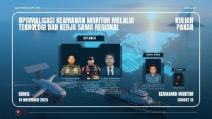 Program Studi Keamanan Maritim Fakultas Keamanan Nasional Universitas Pertahanan menyelenggarakan kegiatan Kuliah Pakar dengan tema “Optimalisasi Keamanan Maritim melalui Teknologi dan Kerjasama Regional”, pada Kamis, 13 November 2025 yang dilaksanakan secara hybrid.