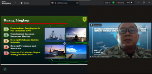 Sementara itu, Dr. Fitry Taufiq Sahary menjelaskan tentang Rencana Pembangunan Pertahanan Negara untuk Mendukung Keamanan Maritim. Dalam penjelasannya, Dr. Fitry menguraikan berbagai transformasi ancaman keamanan maritim yang meliputi praktik Illegal, Unreported, and Unregulated (IUU) Fishing, pencemaran minyak lintas batas, aktivitas riset asing di Zona Ekonomi Eksklusif (ZEE), perdagangan narkoba, penyelundupan, serta kejahatan terorganisir lintas negara. Ancaman-ancaman tersebut dinilai semakin kompleks dan memerlukan pendekatan pertahanan yang adaptif, kolaboratif, serta berbasis teknologi. Lebih lanjut, Dr. Fitry menegaskan mengenai Strategi Pertahanan Maritim Indonesia, yang meliputi pembangunan kekuatan TNI, pembinaan kemampuan, serta peningkatan gelar kekuatan di seluruh wilayah perairan nasional. Diakhir paparan beliau menekankan bahwa Pembangunan Pertahanan Negara dari Segi Keamanan Maritim dapat diperoleh dengan konsep: Pertahanan Berlapis (Layered Maritime Defense), Integrasi Nasional Maritim, Pemanfaatan Teknologi Cerdas, Pertahanan Kepulauan yang Adaptif serta Integrasi Pertahanan dan Ekonomi Biru.